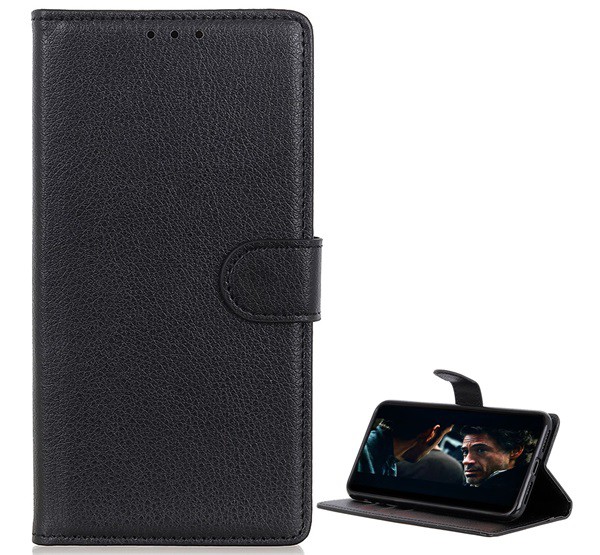 Tok álló, bőr hatású (FLIP, oldalra nyíló, asztali tartó funkció, prémium) FEKETE [Huawei Y6 2019 (Y6 Prime 2019)]