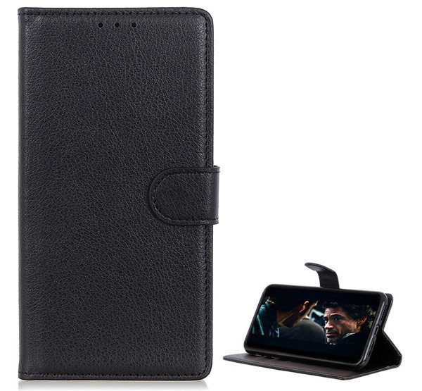 Tok álló, bőr hatású (FLIP, oldalra nyíló, asztali tartó funkció, prémium) FEKETE [Samsung Galaxy A42 5G (SM-A425F)]