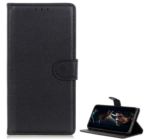 Tok álló, bőr hatású (FLIP, oldalra nyíló, asztali tartó funkció, prémium) FEKETE [Samsung Galaxy A70 (SM-A705F)]
