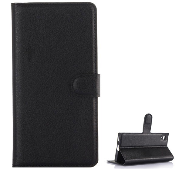 Tok álló, bőr hatású (FLIP, oldalra nyíló, asztali tartó funkció, prémium) FEKETE [Sony Xperia XA1 (G3112)]