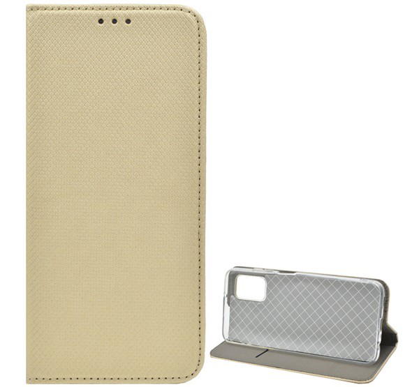 Tok álló, bőr hatású (FLIP, oldalra nyíló, asztali tartó funkció, rombusz minta) ARANY [Samsung Galaxy A03s (SM-A037F)]