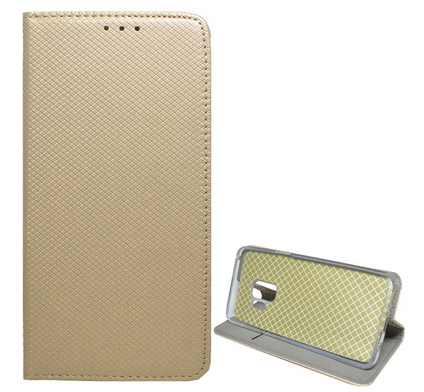 Tok álló, bőr hatású (FLIP, oldalra nyíló, asztali tartó funkció, rombusz minta) ARANY [Samsung Galaxy S9 (SM-G960)]