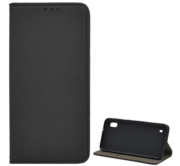 Tok álló, bőr hatású (FLIP, oldalra nyíló, asztali tartó funkció, rombusz minta) FEKETE [Samsung Galaxy A10 (SM-A105F)]