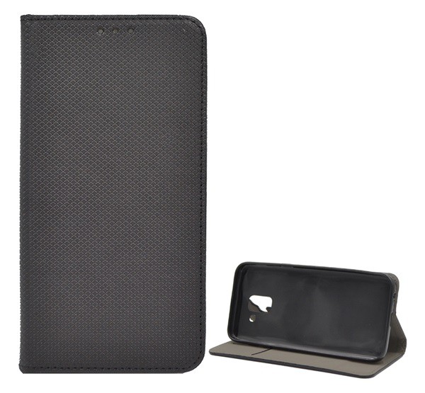 Tok álló, bőr hatású (FLIP, oldalra nyíló, asztali tartó funkció, rombusz minta) FEKETE [Samsung Galaxy J6 (2018) SM-J600F]