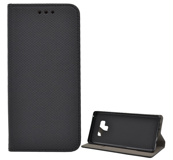 Tok álló, bőr hatású (FLIP, oldalra nyíló, asztali tartó funkció, rombusz minta) FEKETE [Samsung Galaxy Note 9 (SM-N960F)]