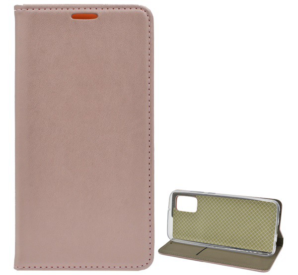 Tok álló, bőr hatású (FLIP, oldalra nyíló, asztali tartó funkció) ROZÉARANY [Samsung Galaxy A02s (SM-A025F)]