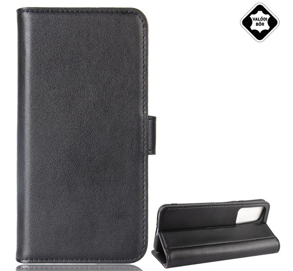 Tok álló, valódi bőr (FLIP, oldalra nyíló, asztali tartó funkció) FEKETE [Honor X10 5G]