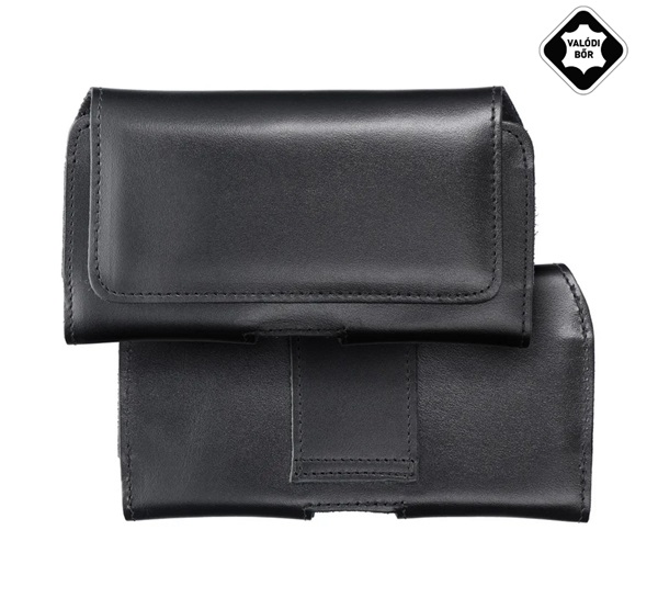 Tok fekvő, valódi bőr (univerzális, övre fűzhető, mágneses, XL méret) FEKETE "Gigapack csomagolás" (GP-146791)
