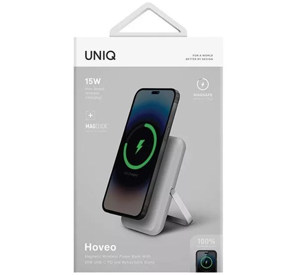 Uniq Hoveo mágneses Fast Wireless Type-C PD külső akkumulátor / powerbank, kártyatartóval szürke