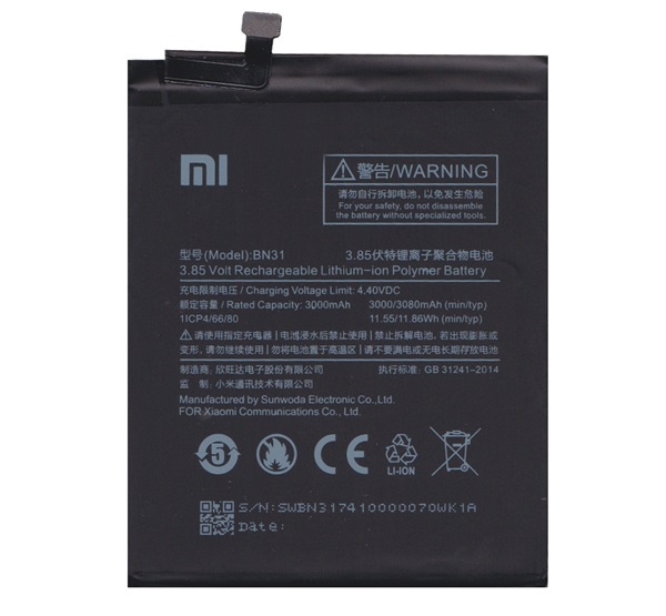 Xiaomi akku 3080mAh LI-Polymer Mi A1 (Mi 5X) / Redmi Note 5A Prime / Redmi S2 (Redmi Y2) "Gigapack csomagolás" (BN31)