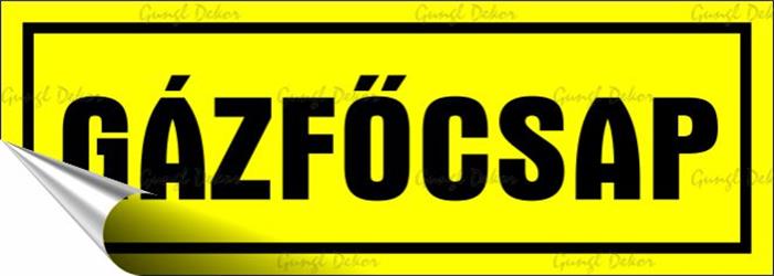 Gázfőcsap információs matrica- anyaga: öntapadós műanyag fólia (vinil)- damil akasztót nem tartalmaz- sárga alapon fekete betűk- mérete: 14x5 cm