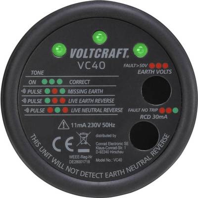 Dugaszolóalj teszter, VC40Dugaszolóaljak gyors és biztonságos vizsgálataFöldelő feszültség teszt fizikai érintkezésselFI/RCD teszt 30 mA-relA konnektor teszter lehetővé teszi a hálózati dugaszolóaljak gyors és biztonságos vizsgálatát. Kiszűrhetők a hibásan szerelt dugaszolóaljak, pl. ha felcserélték az ereket vagy szakadások vannak benne. A teszteredmény optikusan és akusztikusan jelenik meg.Áramvédő kapcsolók (FI kapcsoló) átvizsgálásához is beépített tesztfunkcióval rendelkezik, a háztartásban megszokott 30 mA-s kioldási árammal. A kioldási idő ekkor automatikusan 300 ms-ra korlátozódik.Jellemzők: 3 db LED jelző · Akusztikus jelzés · FI teszt gomb · Érintő elektród.Műszaki adatok: Gyártói szám: VC40 · Kalibrált: Gyári standard (tanusítvány nélkül) · Méret, hossz: 69 mm · Mérési kategória: CAT II 300 V · Súly: 80 g · Típus (kategória): Dugalj teszterSzállítás tartalma: Dugaszolóalj teszter, VC40,Használati útmutató.