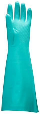 Vegyszerálló nitril védőkesztyű hosszúszárú, M-es méret zöld (A813GNRM)