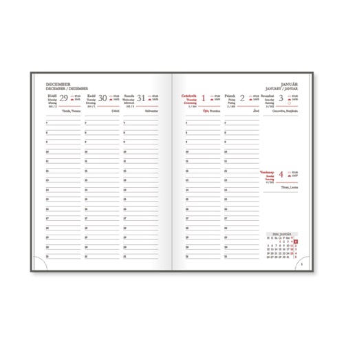 • Extra: sarokperforált naptárrész, oromszegővel, jelzőszalaggal ellátva