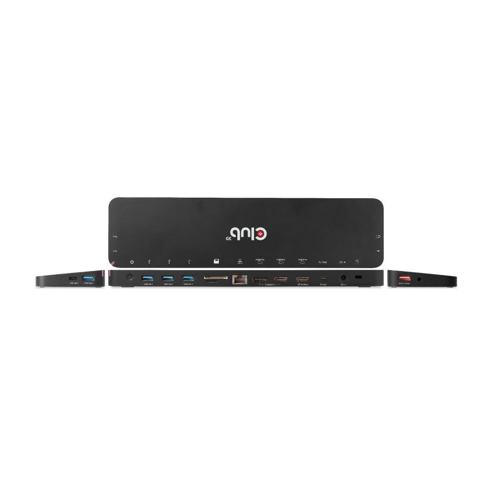A Club 3D CSV-1566 USB Gen1 Type-C Triple Display DP Alt mód + Displaylink/USB mode dinamikus PD töltődokkoló 120 Watt PS teljesítménnyel, egy integrált megoldás, amely egyesíti a videót, adatot, tápellátást, Ethernetet és hangot. Ez a dokkoló tökéletesen alkalmas a Type-C port vagy az USB-A port kiterjesztésére (C-típusú USB konverteren keresztül), hogy több hang-, videó-, adat- és tápcsatlakozót biztosítson, ideális megoldást biztosítva a több portot igénylő felhasználók igényeinek kielégítésére. Ez a dokkoló 3× videoporttal rendelkezik (2× HDMI, egy DP1.2 Alt módból, egy USB módból, 1× Displayport USB módból) a videó élmény érdekében, 4× USB Gen1 Type-A és 1× USB Gen1 Type-C adatátvitelhez átvitel, 1× RJ45 szuper nagy sebességű Ethernethez, 1× SD/TF kártyanyílások memóriakártyák csatlakoztatásához. Emellett intelligens töltőporttal is rendelkezik, amely gyors töltési teljesítményt biztosít a csatlakoztatott mobil eszközökhöz (Apple, Samsung telefonok, padok stb. ).