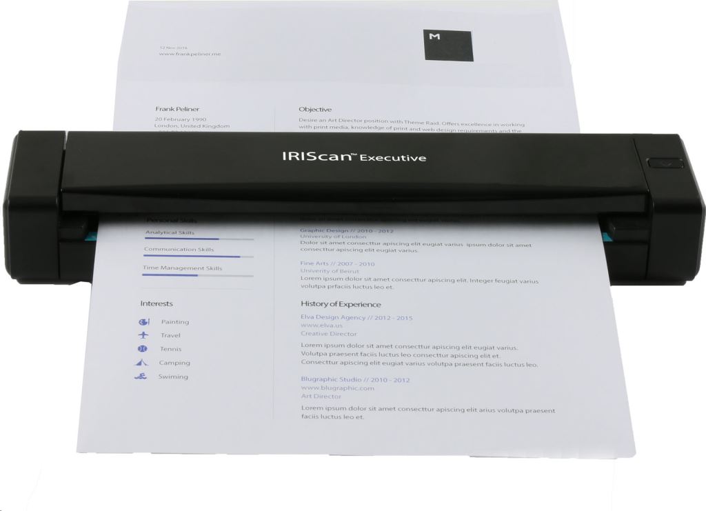Tulajdonságok:IRISCan Exetutive 4 extrémkönnyű (400g), kompakt (hosszában 30cm) hordozható szkenner. 600 dpi-s szenzorának köszönhetően kiváló minőséget biztosít, ráadásul 2 oldalas beolvasásra is képes. Minden funkcióval rendelkezik, amit a nagy asztali szkennerek is tudnak, de mindezt kisebb méretben szolgáltatja.