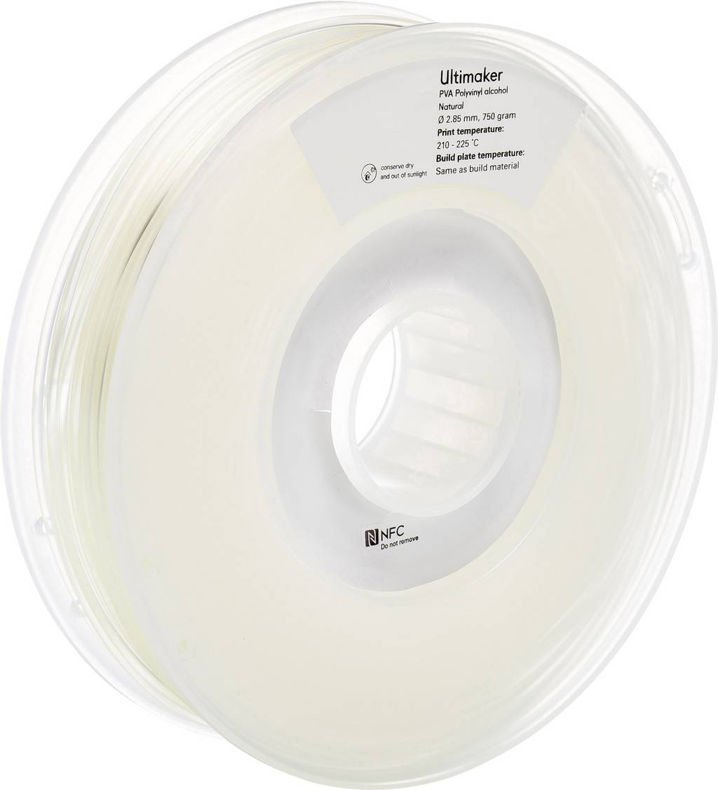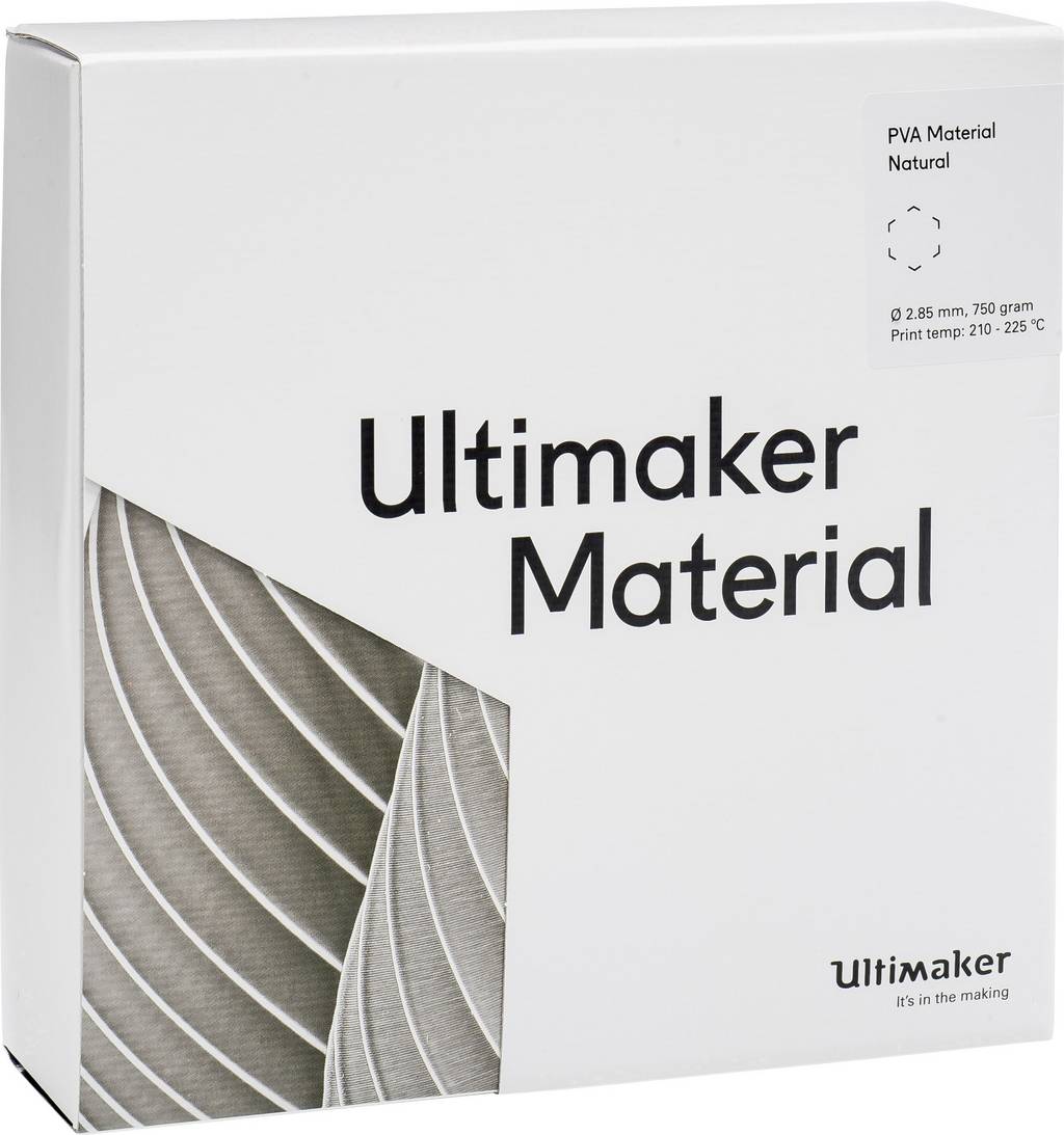 Az új Ultimaker PVA anyag vízoldható filamentum, és kifejezetten az Ultimaker 3 hordozóanyagaként lett kifejlesztve. A PVA-t kizárólag olyan hordozóanyagként használják, amely a nyomtatási folyamat után teljesen eltűnik, miután eltöltött egy kis időt vízfürdőben. Következésképpen az izzószál csak Dual Extruder FDM nyomtatókkal használható. A PVA nagy előnye, hogy a 3D-s modell létrehozásakor a tervezőnek nem kell figyelembe vennie a geometriai korlátozásokat. Az anyag tökéletesen harmonizál az Ultimaker PLA és nylon szálakkal. A Cura saját anyagprofilja van ezekhez a kombinációkhoz. Számunkra az Ultimaker 3 jelenleg a legjobb cím az asztali FDM nyomtatásban, hogy rendkívül összetett 3D modelleket nyomtasson.