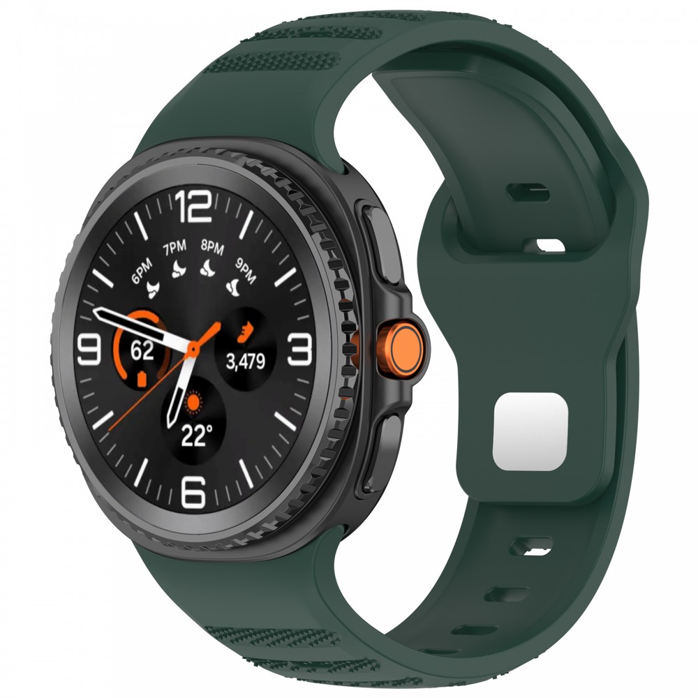 Stílus és kényelem minden napra A Galaxy Watch 8/Classic óraszíjjal a kényelem és a stílusmindig kéznél van. A puha gumiból készült, rugalmas kialakításnak köszönhetőena szíj egész nap kényelmes viseletet biztosít. Személyre szabás egy mozdulattal A szíj cseréje még sosem volt ilyen egyszerű. Az intuitívdinamikus szíjcsatlakozásnak köszönhetően egyetlen gombnyomással, pillanatokalatt lecserélheted az óraszíjat, és a stílusodhoz igazíthatod. A szoros ésstabil illeszkedés pedig garantálja, hogy az óra biztonságban maradjon acsuklódon.