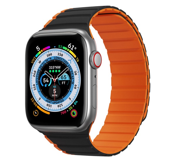 Dux Ducis pótszíj (egyedi méret, nagy, szilikon, 3D, mágneses) FEKETE/NARANCSSÁRGA Apple Watch Series 10 46mm / Watch Ultra 2 49mm / Watch Series 9 45