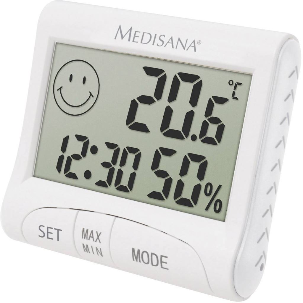 Ha bármikor gyorsan szeretnéd tudni a hőmérsékletet és a páratartalmat, a jól bevált Medisana márka kis hőmérője tökéletes választás számodra. Kompakt méretei mellett megtartotta a nagyon jól áttekinthető kijelzőt. Egy pillantással ellenőrizheted az aktuális hőmérsékletet, páratartalmat és a pontos időt. Emellett a smiley-ra nézve azonnal megtudhatod, hogy az értékek elérik-e az optimális szintet.