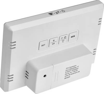Műszaki adatok: Bázisállomás tápellátás: 2 db ceruzaelem (nem szállítjuk vele) · Előrejelzés: 8 óra · Funkciók (időjárásjelzők): Kültéri hőmérséklet, Dátum, Rádiójel vezérlésű óra (DCF77), Beltéri légnedvesség, Beltéri hőmérséklet, Komfortjelző, Max. 3 érzékelő, Holdfázis, Napkelteapnyugta ideje, Tendencia jelzés, Hét napjainak jelzése · Házszín: Fehér · Kijelző (digitális/mechanikus/analóg): digitális · Külső hőmérséklet mérési tartomány: -25