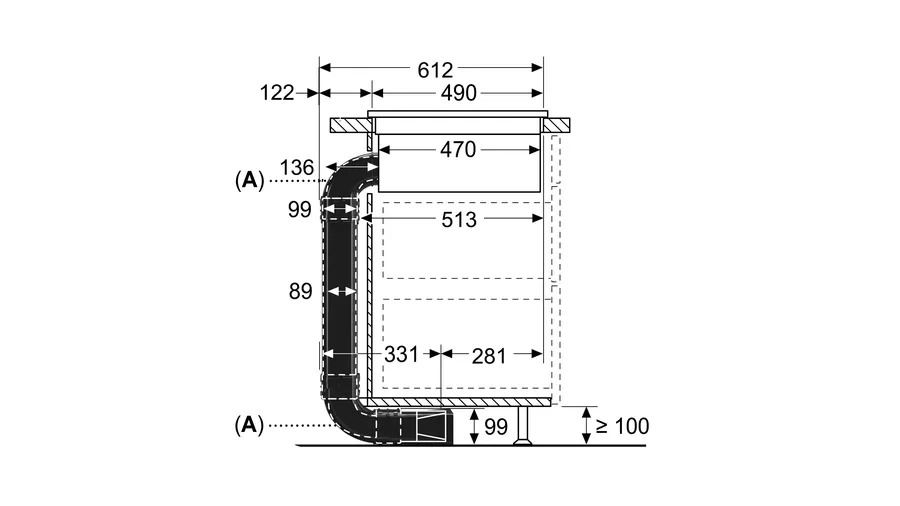 • Tartozékkészlet főzőlapja részben légcsatornás recirkulációs konfigurációihoz integrált elszívómodullal 70 cm-es vagy nagyobb munkalapmélységű konyhákban.