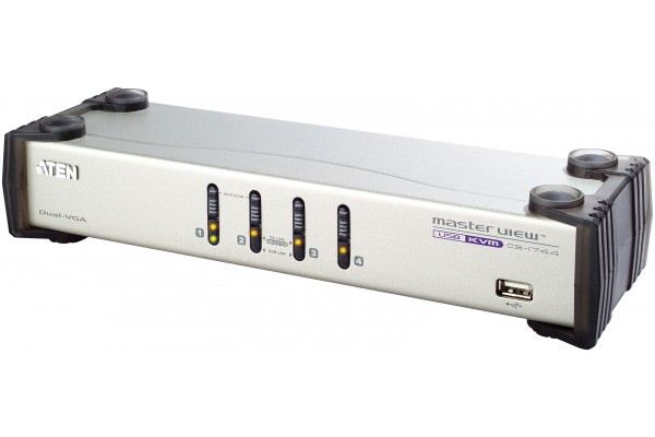 Kis helyigényű, kompakt CPU switch 4 számítógép vezérlésére. Igényesen kidolgozott fémházas eszköz. A monitorok (gépenként 2-2 db) hagyományos 15 pólusú VGA csatlakozókkal kapcsolódhatnak a switch-hez, a billentyűzet és az egér USB csatlakozókon keresztül. A konzol USB csatlakozóit a készülék hátoldalán helyezték el, itt találhatók az audió csatlakozók, minden géphez egy mikrofon és egy hangszóró port, 3.5mm-es jack aljzat képében. A hátoldalon található egy USB port, ahová egy megosztott nyomtató kapcsolható. Az előlapont lévő USB porthoz digitális kamera csaltakoztatható, melyről a képek így bármelyik számítógépre letölthetőek. A készülék telepítése rendkívül egyszerű, szoftverre nincs szükség. Videófelbontása 2048 x 1536pixel.