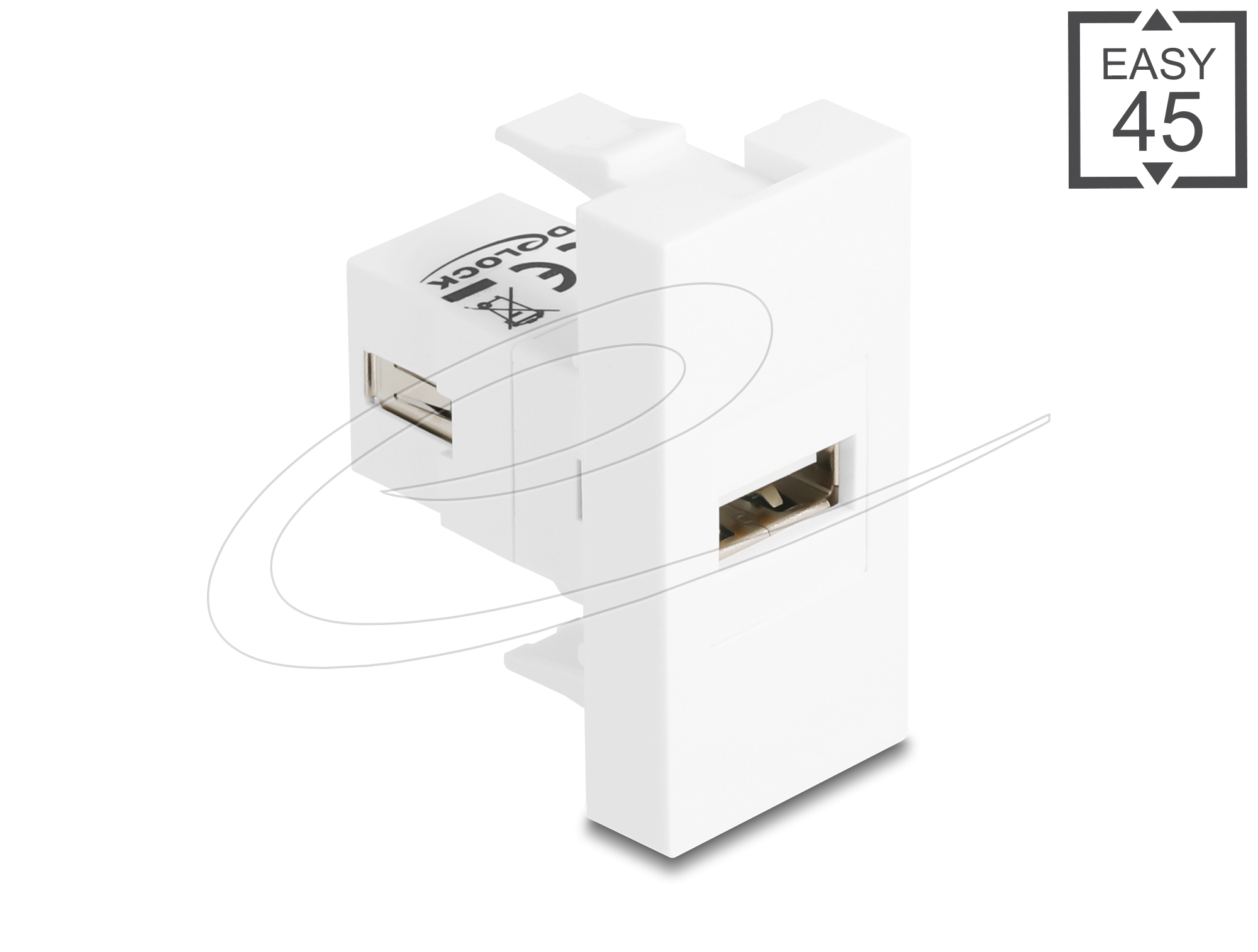 Delock Easy 45 modul USB 2.0 A-típusú anya - USB 2.0 A-típusú anya, fehér (90908)