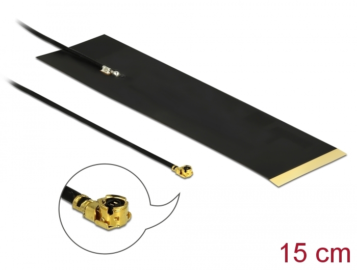 Delock LTE Antenna, MHF I csatlakozódugó, 1,9 - 3,9 dBi, 1.13 15 cm-es NYÁK-lap, belso öntapadós (12612)