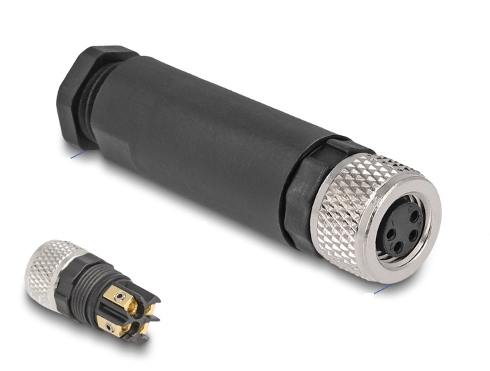Ez a Delock csatlakozó használható egy kábel M8 konnektorhoz például gépellenőrzés vagy automatizációkor kötéséhez egy csavaros terminál csatlakozó felületen keresztül. Műszaki adatok Csatlakozó: 1 x M8 anya A kódolt 4 tűs 4 x csavar alkalmas Kábelkapcsoló használható 26-22 AWG-ig (0,13 - 0,32 mm2) Működési feszültség: max. 60 V Árammennyiség: max. 3 A Működési hőmérséklet: -25 C ~ 85 C Védelmi besorolás: IP67 Kábel bemenet max. 3,0 - 4,5 mm Csavarmenet méret: M8 x 1,0 mm Burkolat anyaga: PA66 Szín: fekete Méretek (H x M): kb. 42 x 12,1 mm Rendszerkövetelmények Egy szabad M8-apa A csomag tartalma Csatlakozó Imbuszkulcs Csomag Zárható műanyag tasakGyártó: Delock