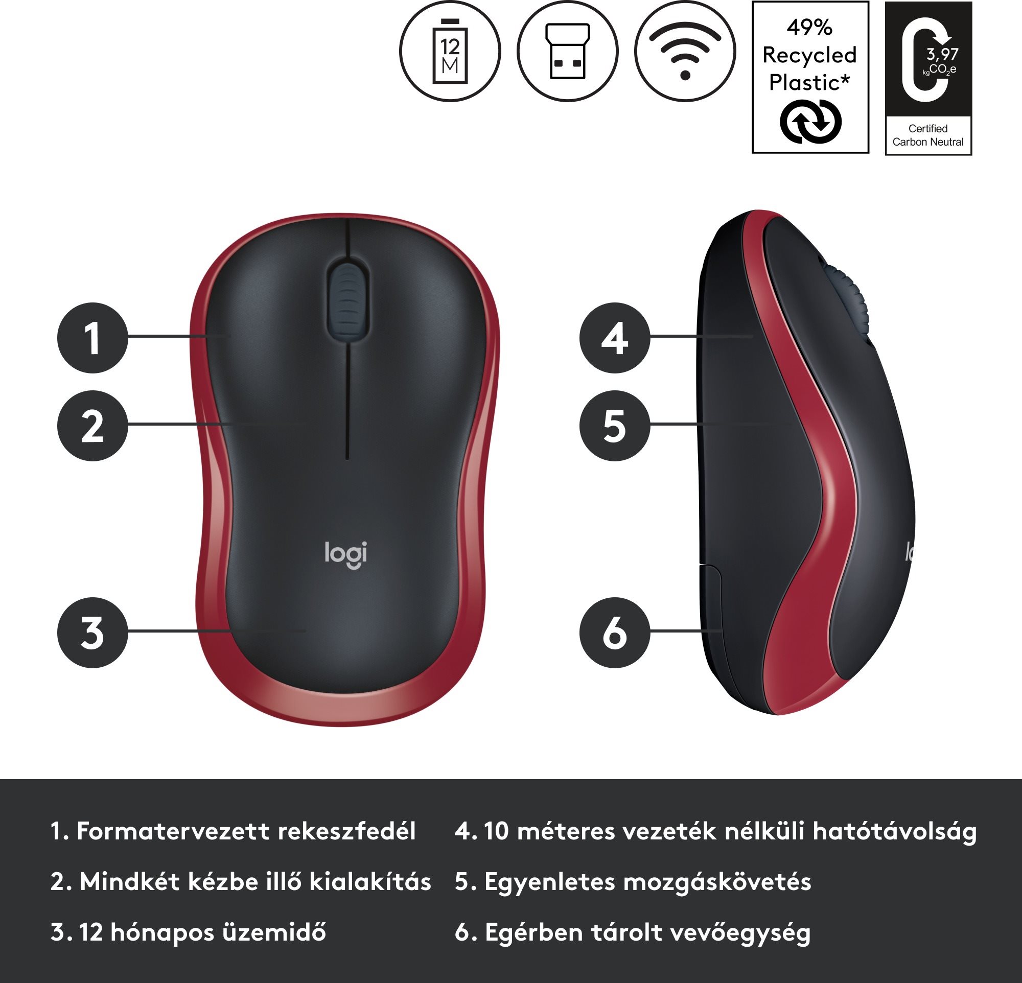 Az elegáns Logitech M185 vezeték nélküli egér különösen az útközbeni felhasználóknak tetszik. Ez az ideális fejlesztés minden laptop vezérléséhez, amely a hagyományos érintőpaddal való munkavégzésnél lényegesen magasabb szintű kényelmet biztosít.