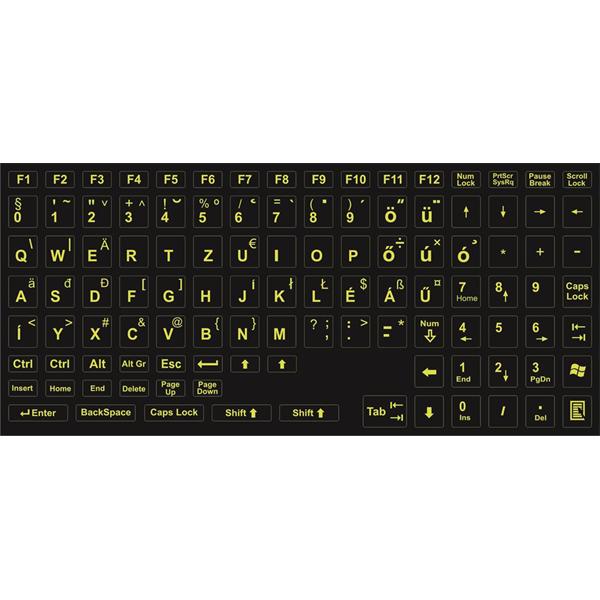 Billentyűzet matrica HU világító világos zöld betű fekete alapon