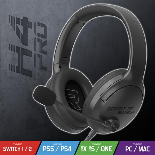 Spirit Of Gamer Fejhallgató - PRO-H4 Black (MultiPlatform, mikrofon, 3.5mm jack, hangerőszabályzó, fekete) (MIC-PH4BK)