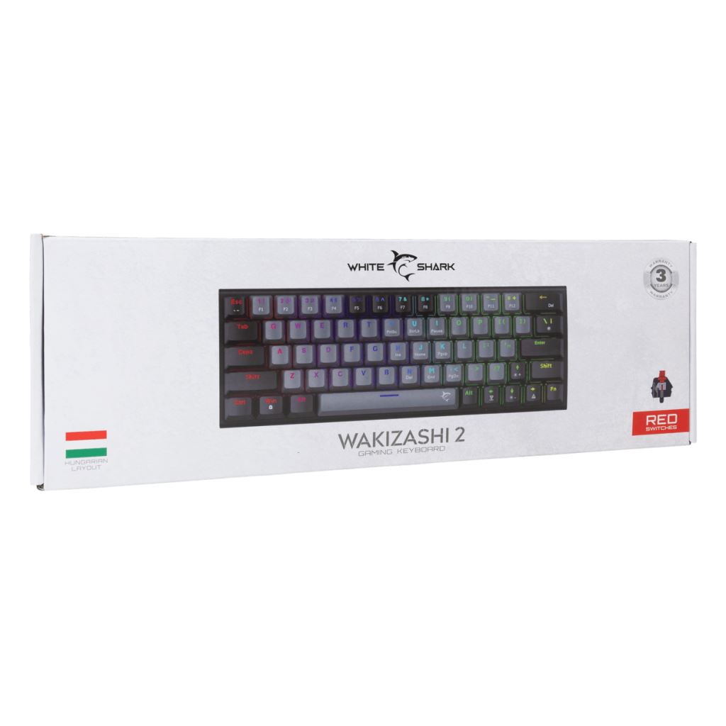White Shark WAKIZASHI 2 piros kapcsolós gaming billentyűzet szürke-fekete (GK-002713V2-G-B/R-HU)