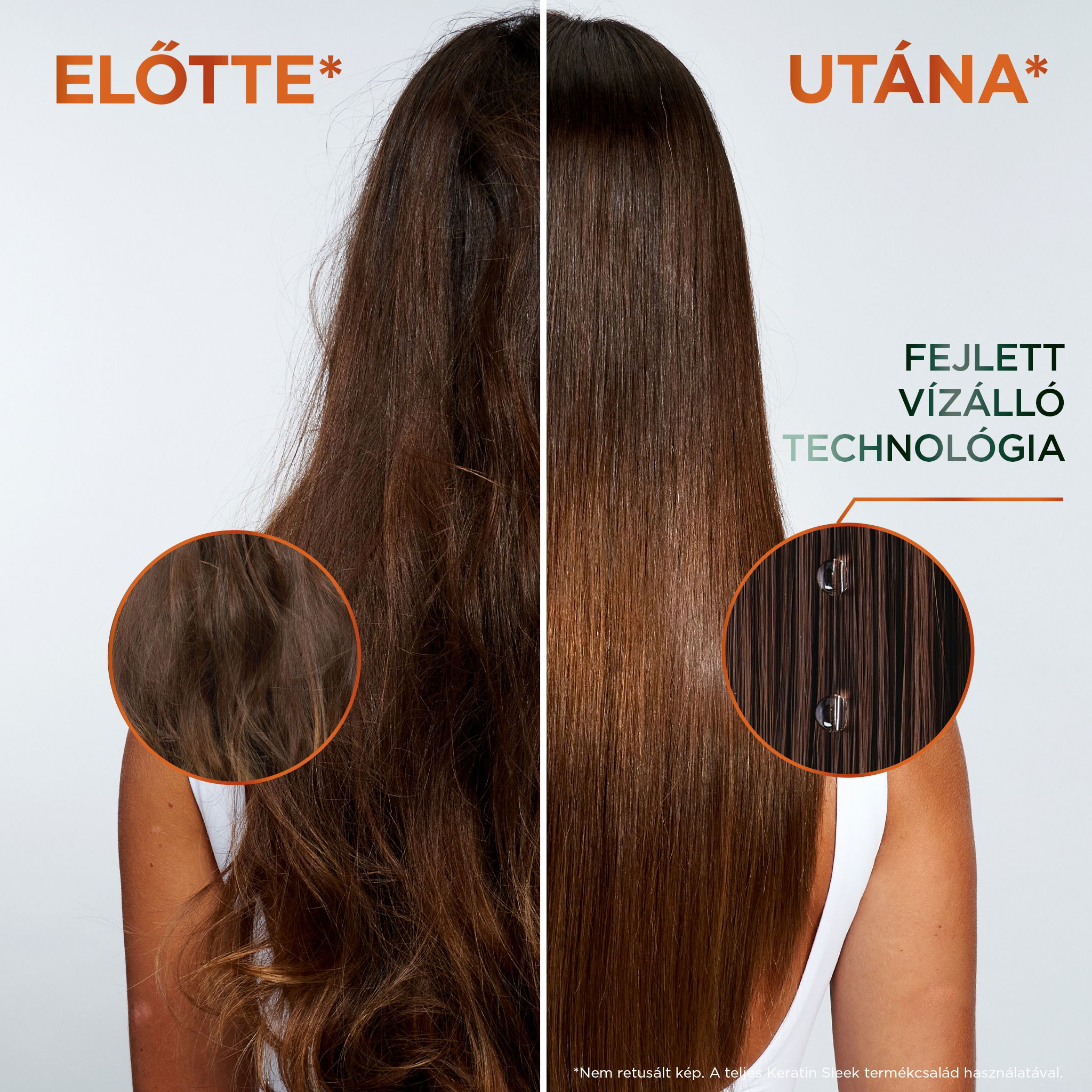 A keratin simító komplex láthatóan simább és kezelhetőbb hajat biztosít, míg az argánolaj táplálja és erősíti a hajat.