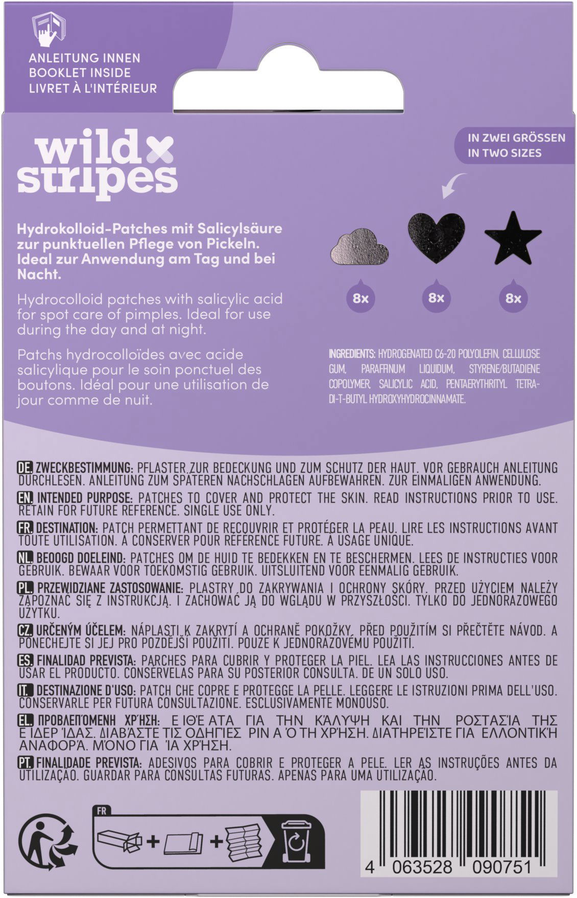 Küzdj a pattanások ellen hatékonyan és észrevétlenül a WILD Stripes Anti-Pimple Patches Holo Clear tapaszokkal. Ezek az innovatív tapaszok gyorsítják a pattanások gyógyulását, felszívják a szennyeződéseket és megnyugtatják az irritált bőrt, miközben védelmet nyújtanak a külső hatásoktól. A Holo Clear kollekció ezüst színű csillag, felhő és szív formájú tapaszokat kínál, így nappal és éjszaka is stílusosan viselhetők. A hidrokolloid formula segít csökkenteni a bőrpírt, mérsékli a gyulladást és védi a bőrt az érintéstől és az irritációtól, elősegítve a gyorsabb gyógyulást nem kívánt hegesedés nélkül.