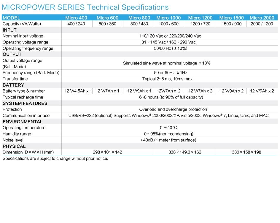 Tulajdonságok:A Micropower sorozat line-interaktiv termékei intelligens mikroprocesszor vezérléssel költséghatékony megoldást biztosítanak a PC-k és az értékes perifériák védelmére.