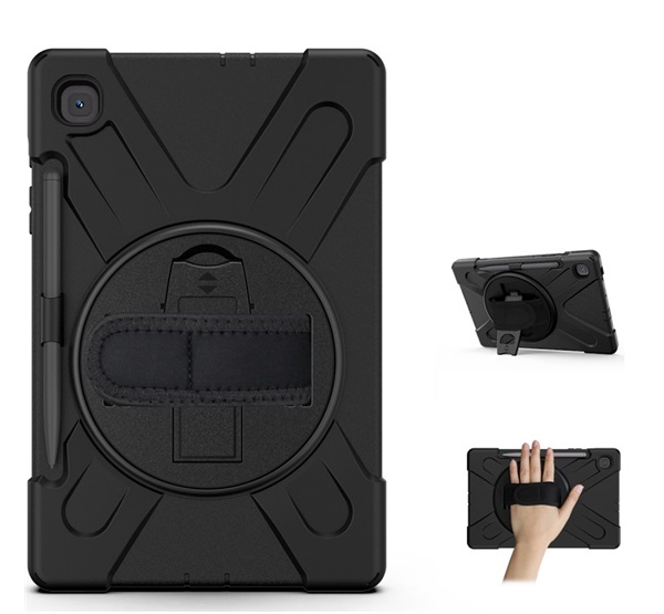 Defender műanyag telefonvédő (ütésállóság, kitámasztó, 360° + kézpánt) FEKETE SamsungGalaxy Tab S6 Lite 10.4 LTE (SM-P625) 2024 / Galaxy Tab S6 Lite 1