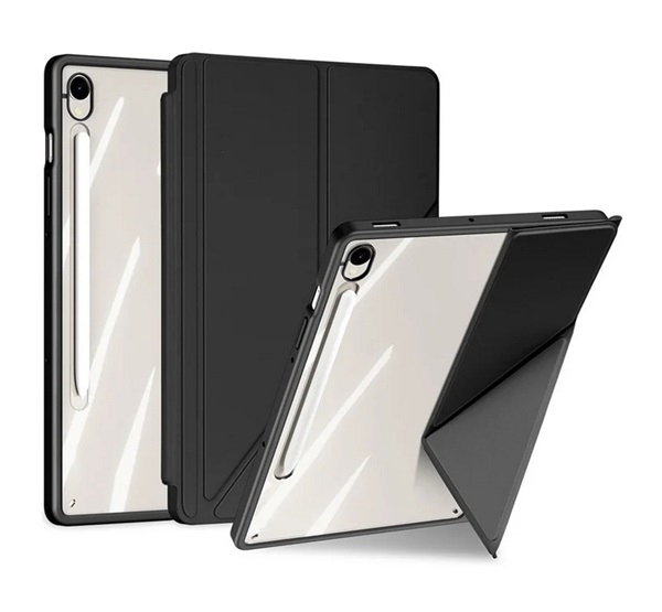 Dux Ducis MAGI ORIGAMI tok álló, bőr hatású fekete Samsung Galaxy Tab S9 WIFI (SM-X710)