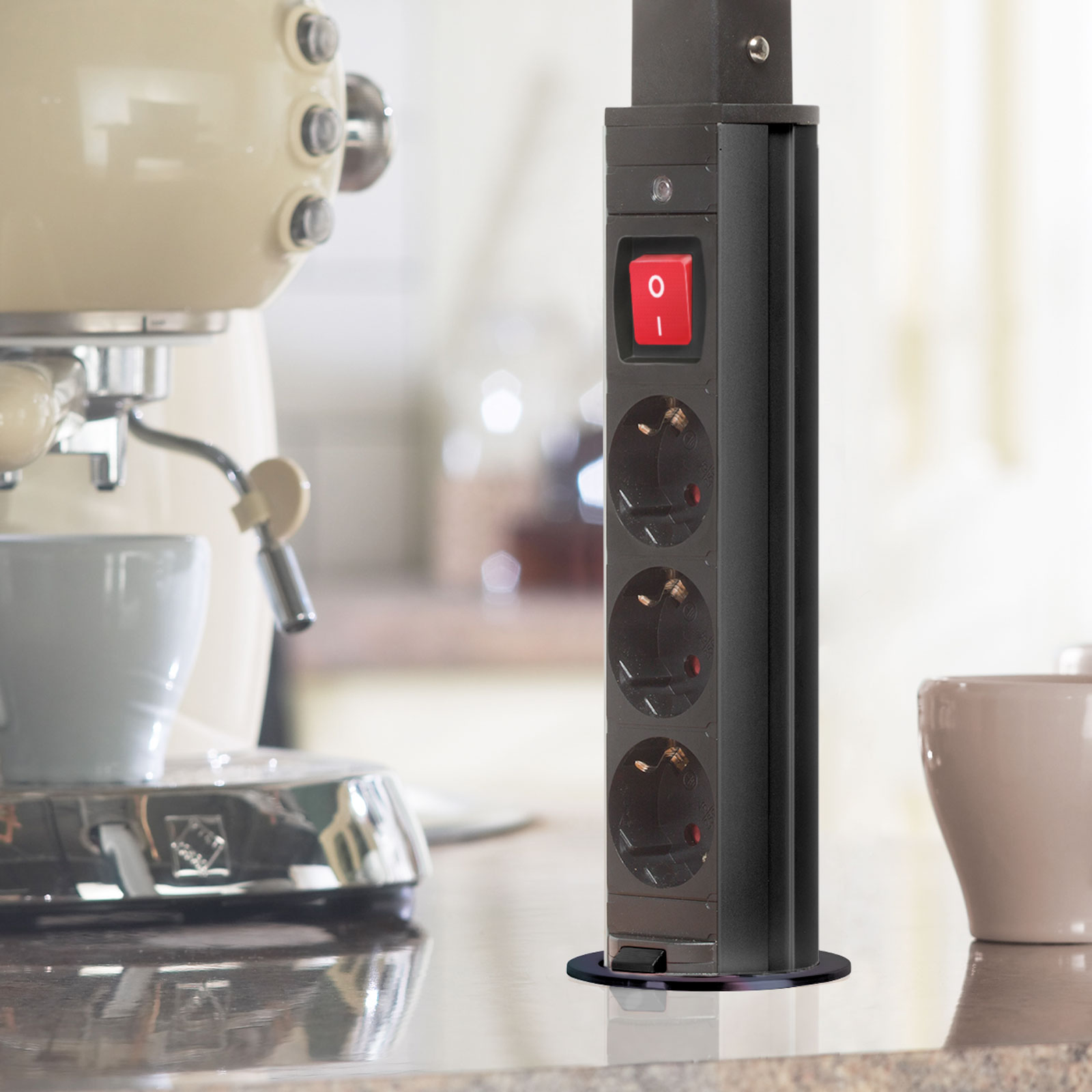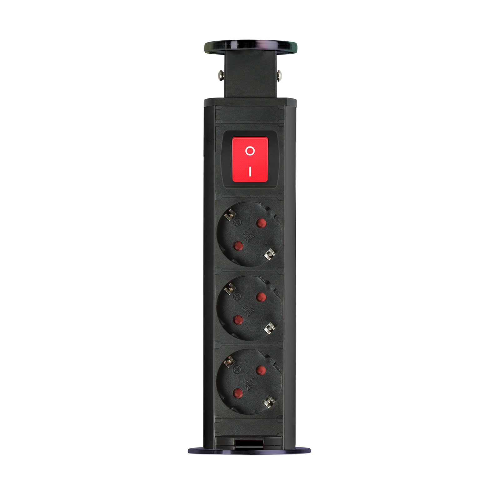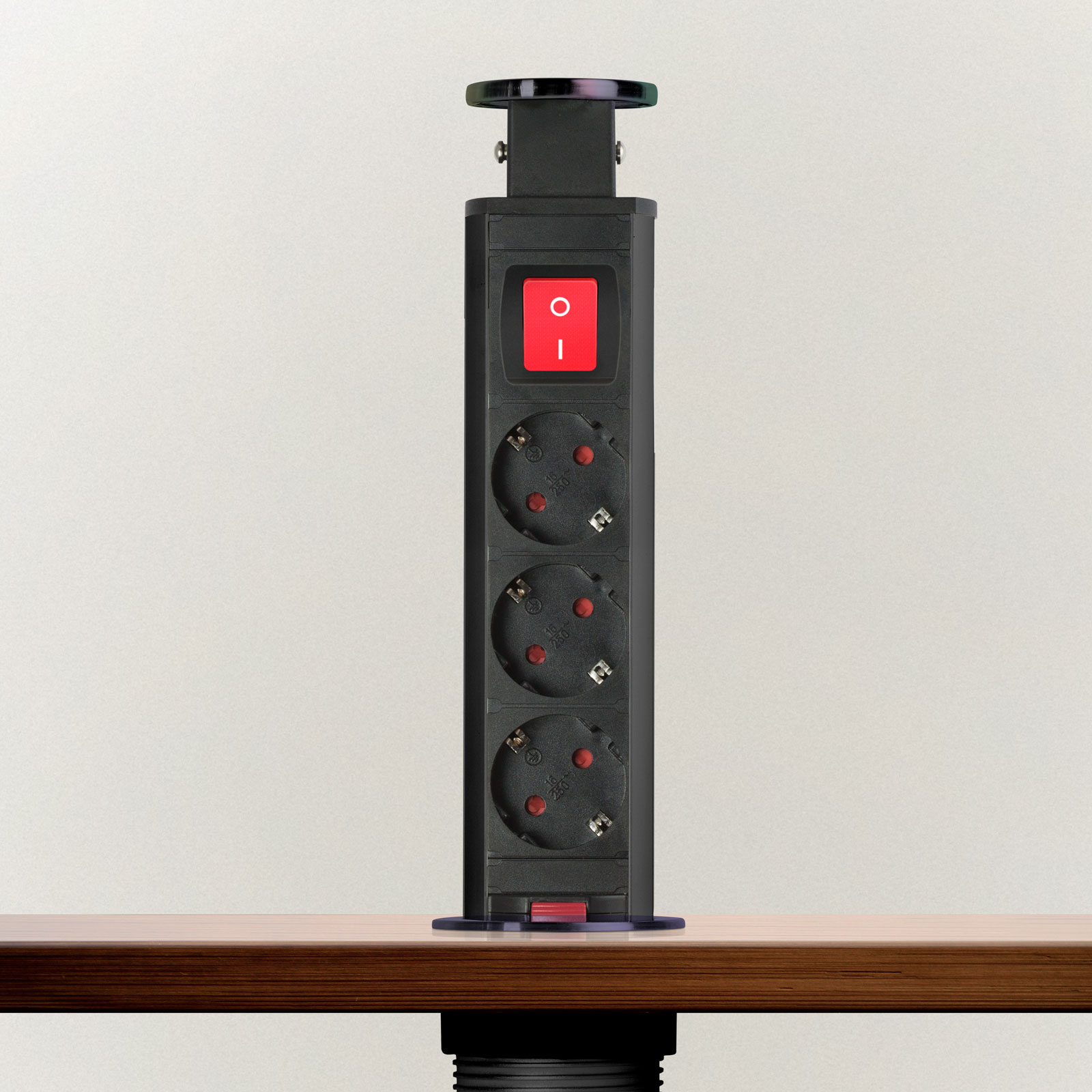 Süllyeszthető elosztó irodai és otthoni felhasználásra, fém házzal, 3 db gyermekvédelemmel ellátott aljzattal, főkapcsolóval. Asztala, bútora legyen mindig elegáns és rendezett, mégis funkcionális. A rejtett elosztó kiváló megoldás lehet ha már például kész konyhával rendelkezik, de nincs elegendő konnektor a kívánt helyen. Ilyenkor falvésés és villamos hálózat bővítés nélkül, remek alternatíva lehet egy rejtett elosztó. Egy mozdulat és máris rendelkezésre áll 3 szabad konnektor. Ideális lehet olyan elektromos eszközökhöz, amit nem folyamatosan használunk, kenyérpirító, vízforraló... Ha használaton kívül vannak, a "töltőoszlop" egy mozdulattal elrejthető, ezzel is megkönnyítve például a takarítást, valamint rendezett, letisztult külsőt ad a helységnek.